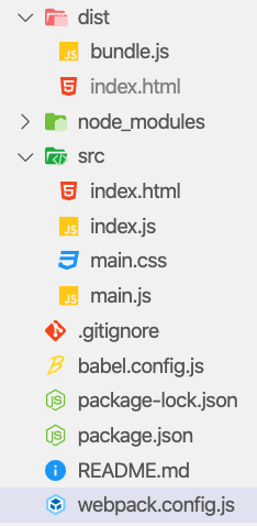 여기에 main.js와 main.css를 index.js에 컴포넌트로 추가해주면 아래와 같은 파일 구조를 만들 수 있다.