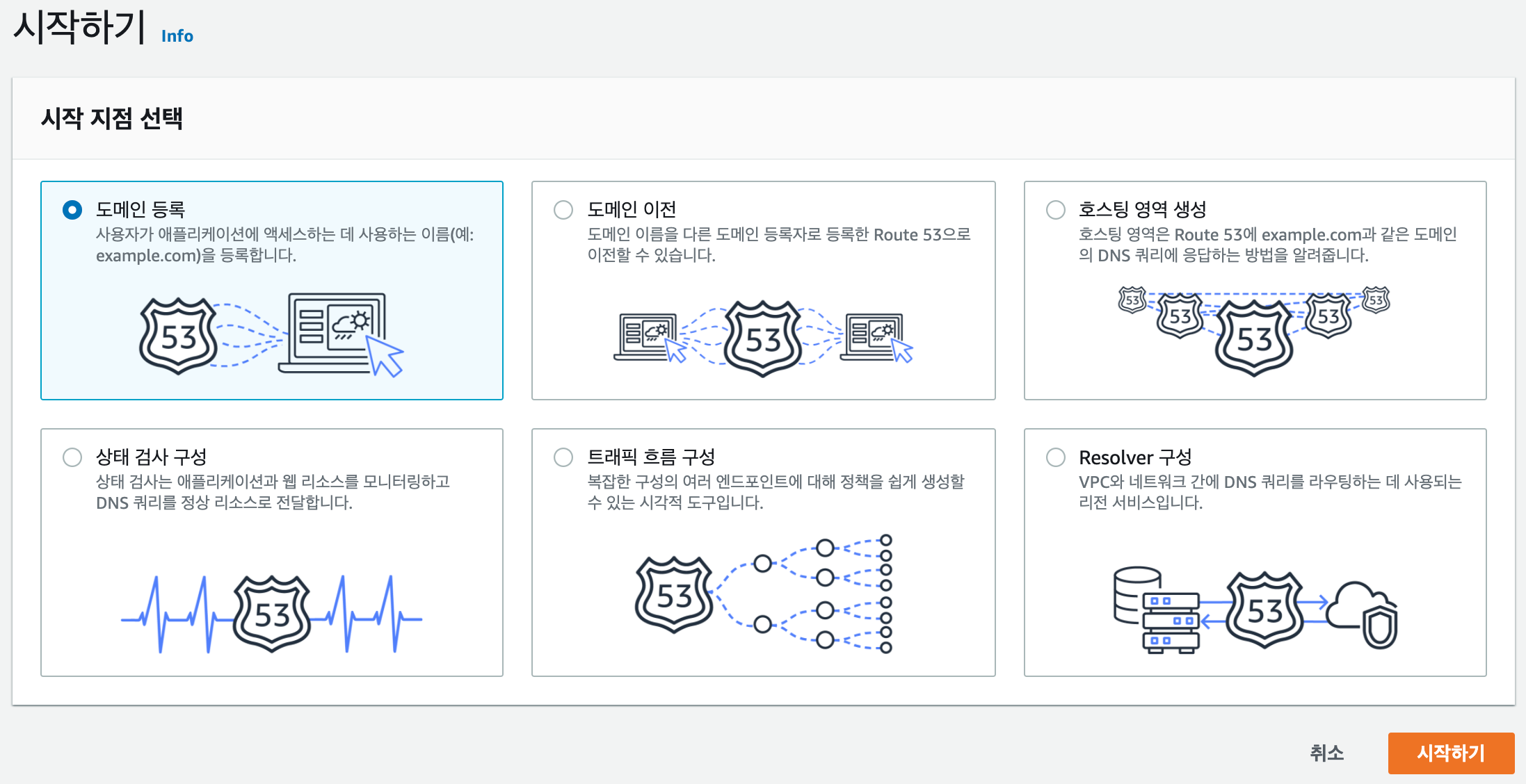 3. 도메인 등록을 선택하고 시작하기를 클릭한다.