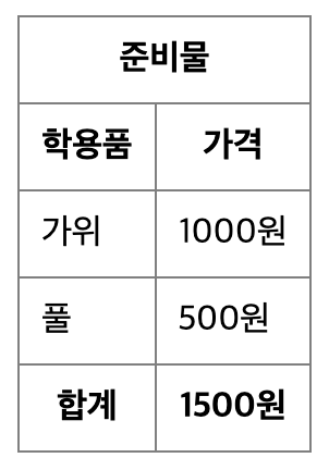 colspan 속성을 넣어서 <th>나 <td>가 두 칸을 차지하게 할 수도 있다.