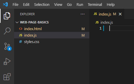 index.js 파일을 열어 JavaScript 코드를 작성하겠습니다.