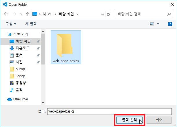 앞서 설치한 Visual Studio Code로 방금 생성한 프로젝트 폴더를 엽니다.