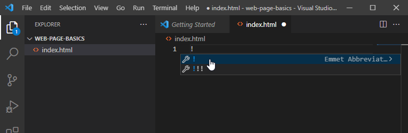 에디터에 !를 입력하고 생기는 팝업의 첫 번째 항목을 선택합니다.