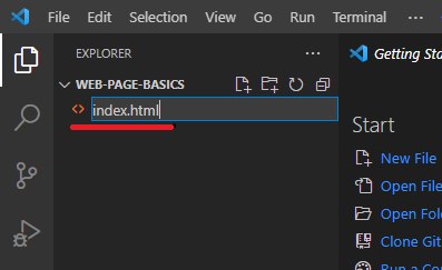 New File 아이콘을 클릭해서 index.html 파일을 만듭니다.