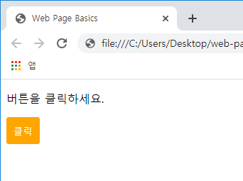 '버튼이 클릭됐습니다.'라는 alert 메시지가 나타나게 해준다 정도로만 이해하세요.
