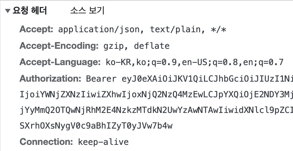 클라이언트는 인증이 필요한 요청을 할 때마다 header에 access 토큰을 포함시켜서 보낸다.