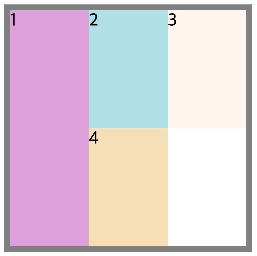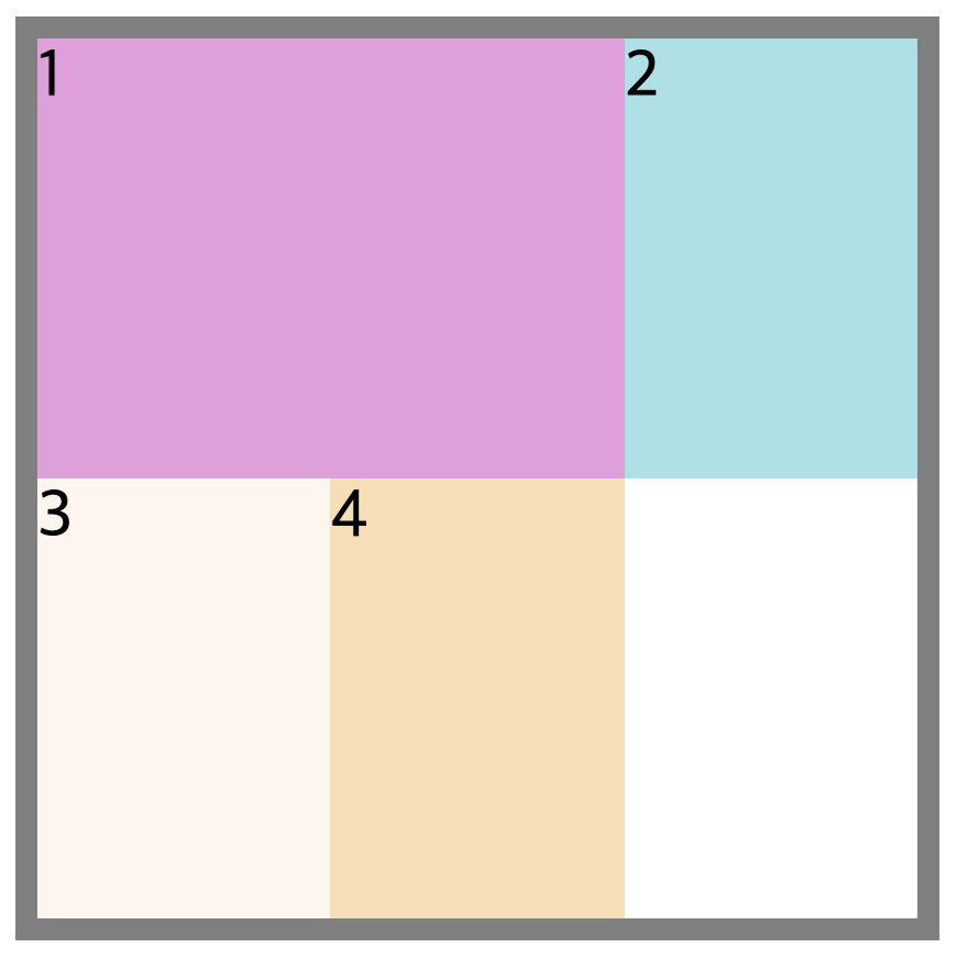 // grid-area: row의 시작점 / column의 시작점 / row의 끝점 / column의 끝점