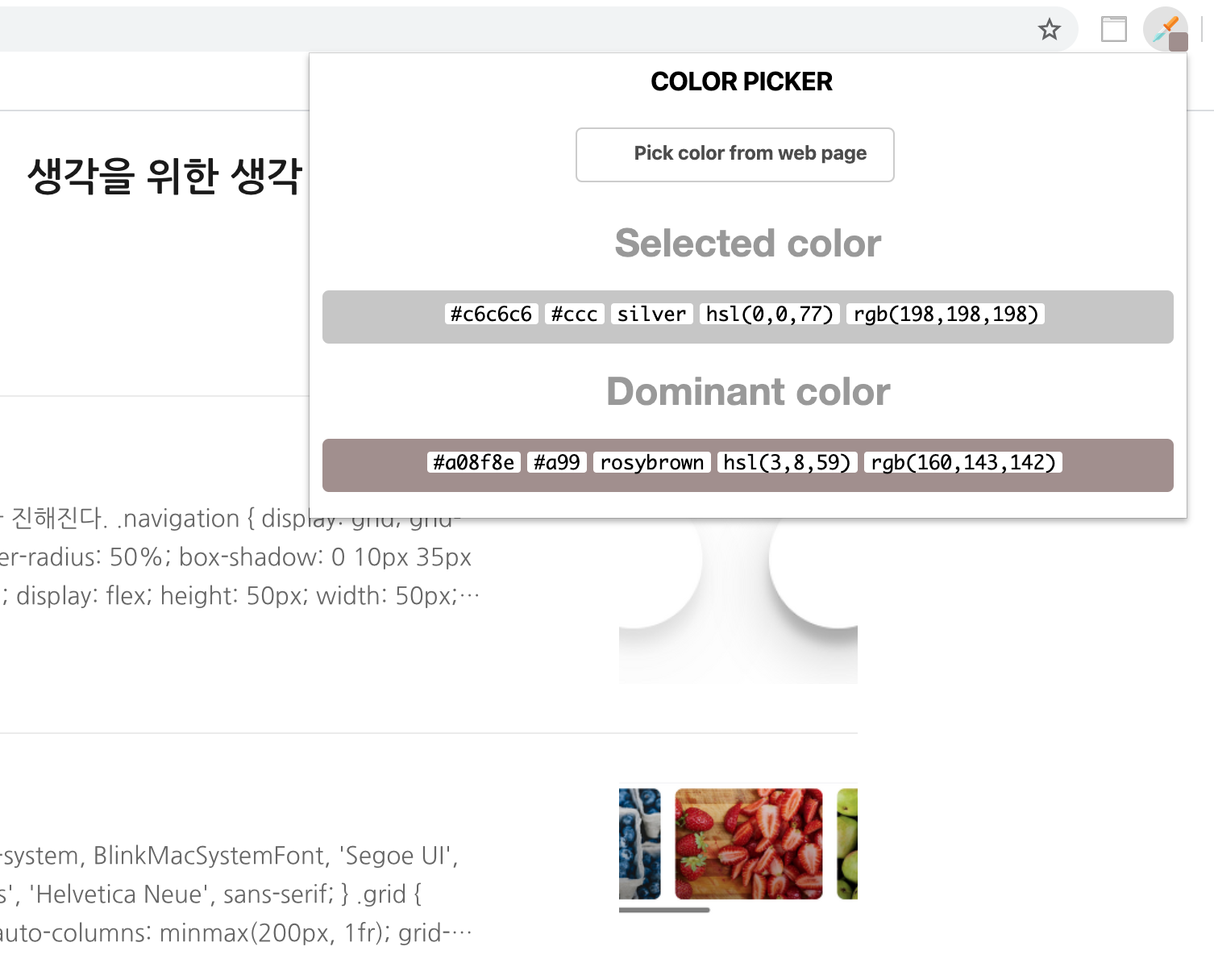 https://chrome.google.com/webstore/detail/color-picker/gpldannlkkicofjolkffchkpbcpioecc?hl=ko