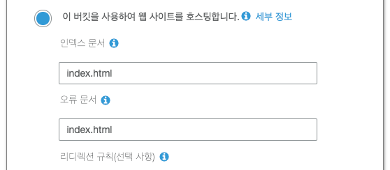 '이 버킷을 사용하여 웹 사이트를 호스팅합니다.'를 클릭한다.
