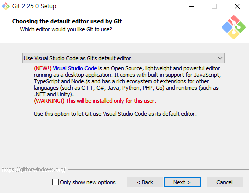 기본적으로 사용할 코드 에디터만 설정해주고