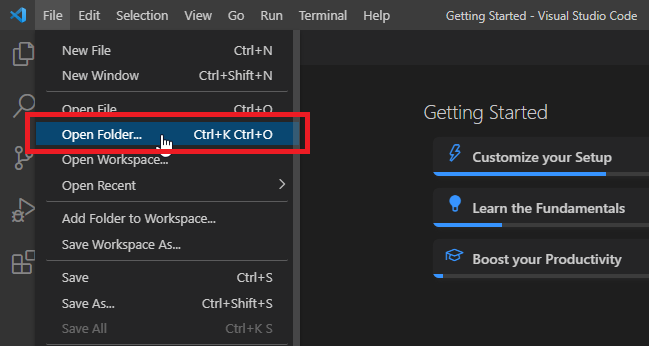 앞서 설치한 Visual Studio Code로 방금 생성한 프로젝트 폴더를 엽니다.