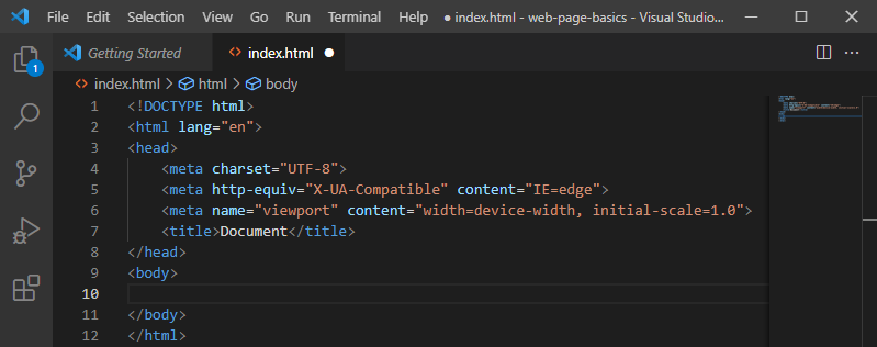New File 아이콘을 클릭해서 index.html 파일을 만듭니다.
